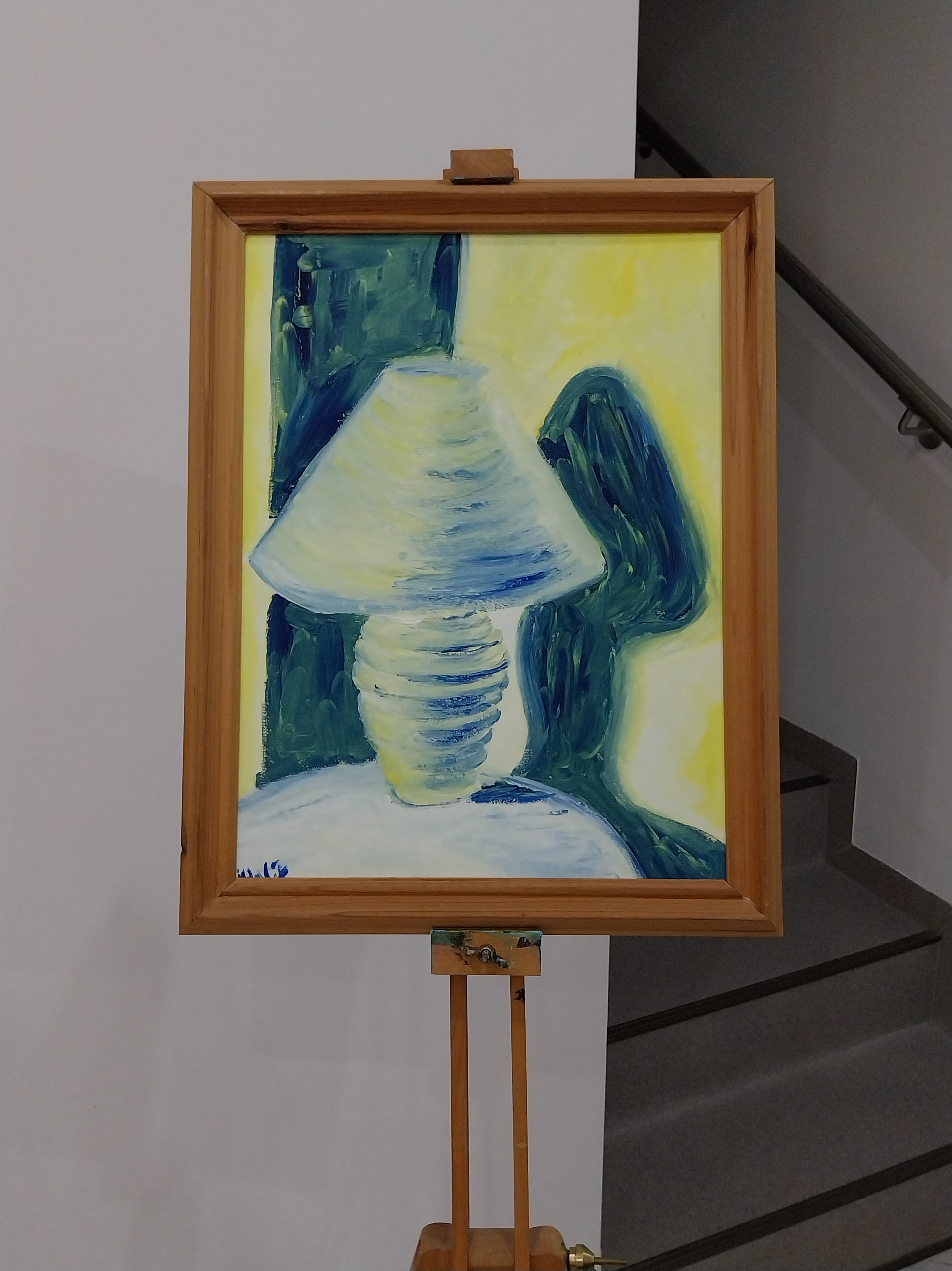 Seen during the evening under the lights this bedside lamp appears to provide additional illumination, giving the impression of protracting its essence beyond the confines of a physical boundary.