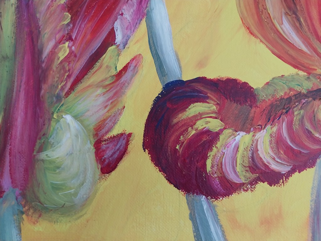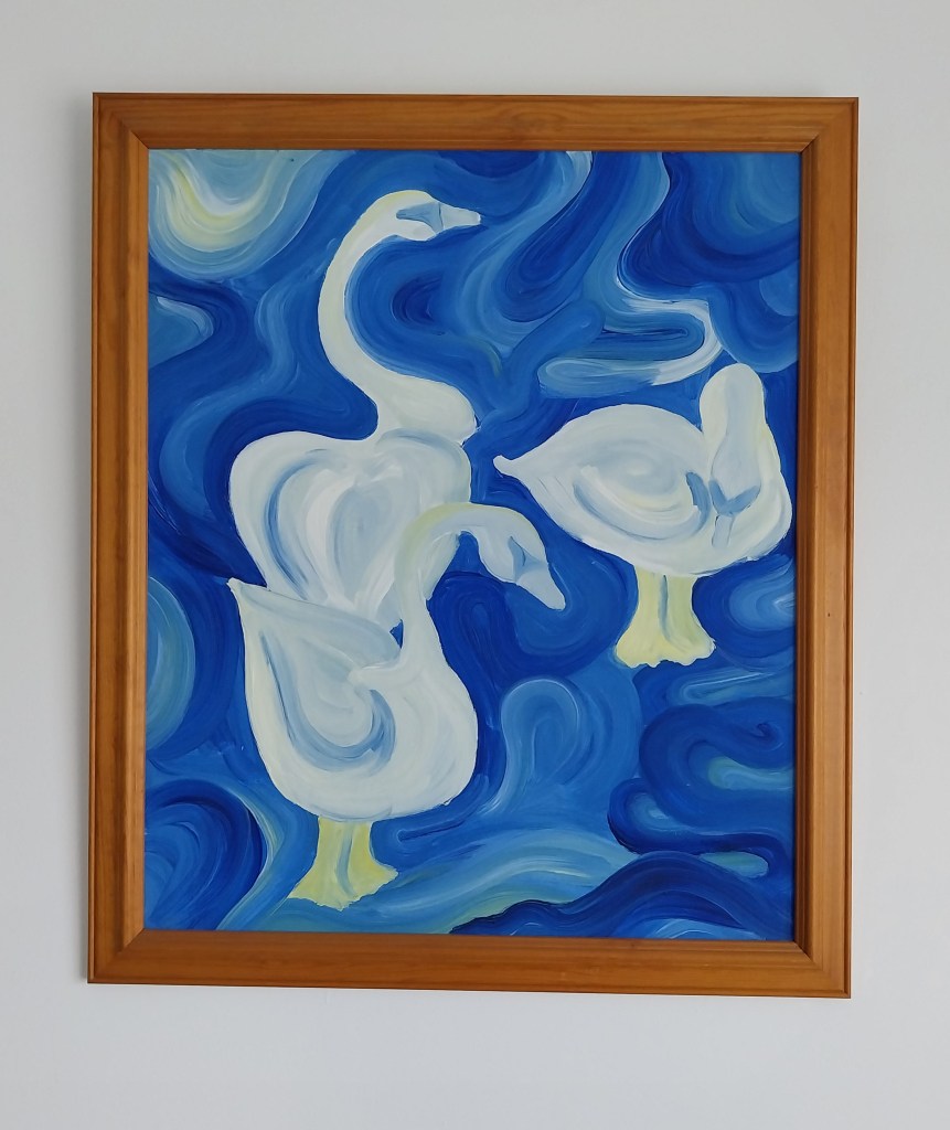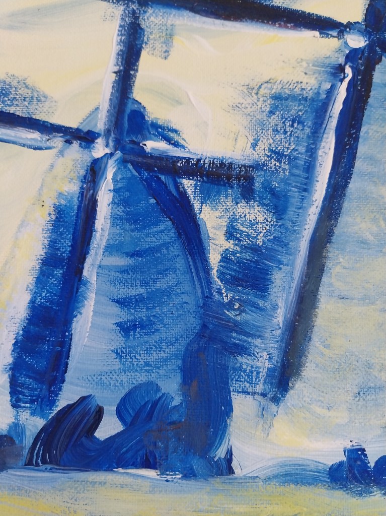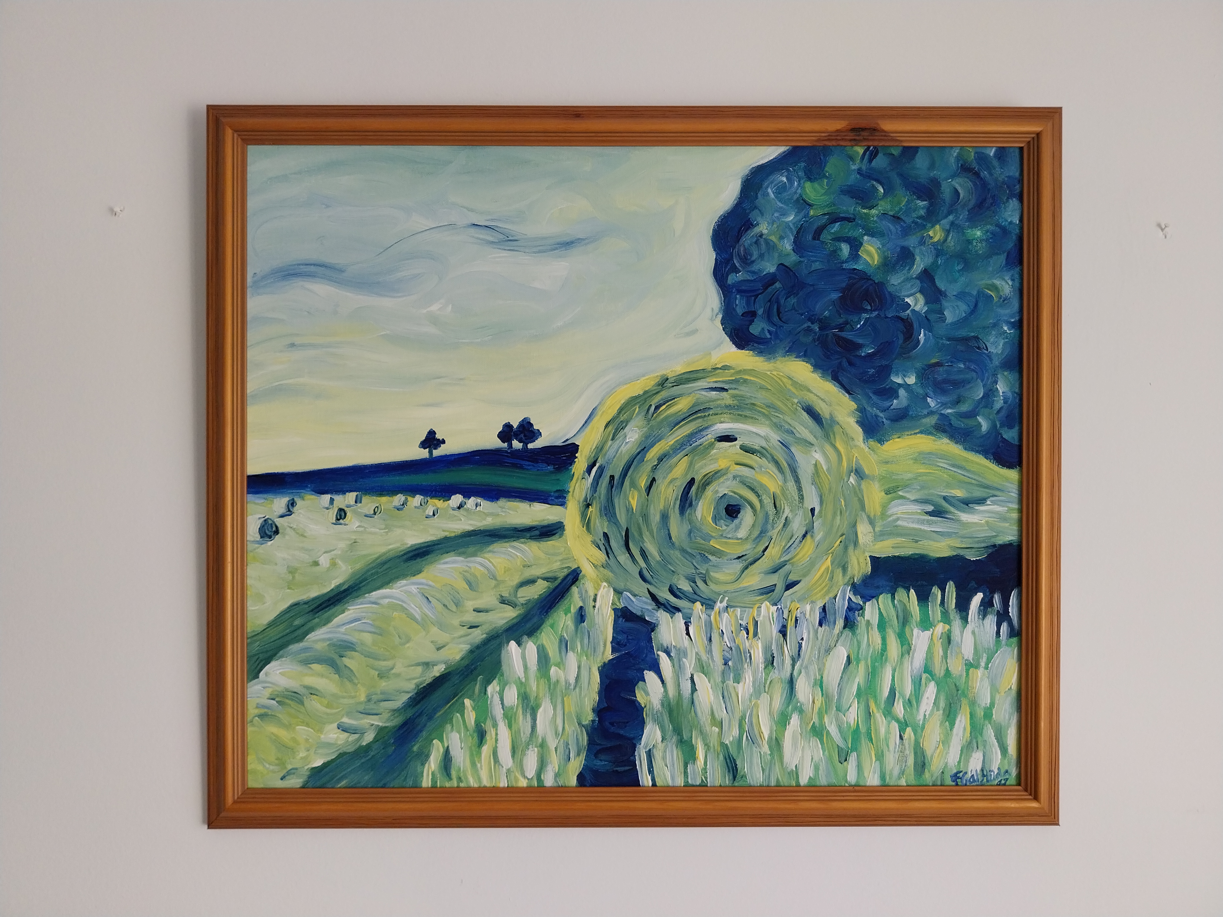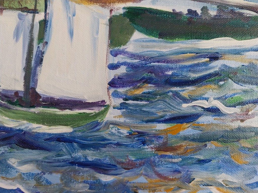 Larger paintings characterised the earlier part of Hilda’s career, acrylic on canvas board and simply framed with wood. The subjects were influenced by time spent in Northern Europe.