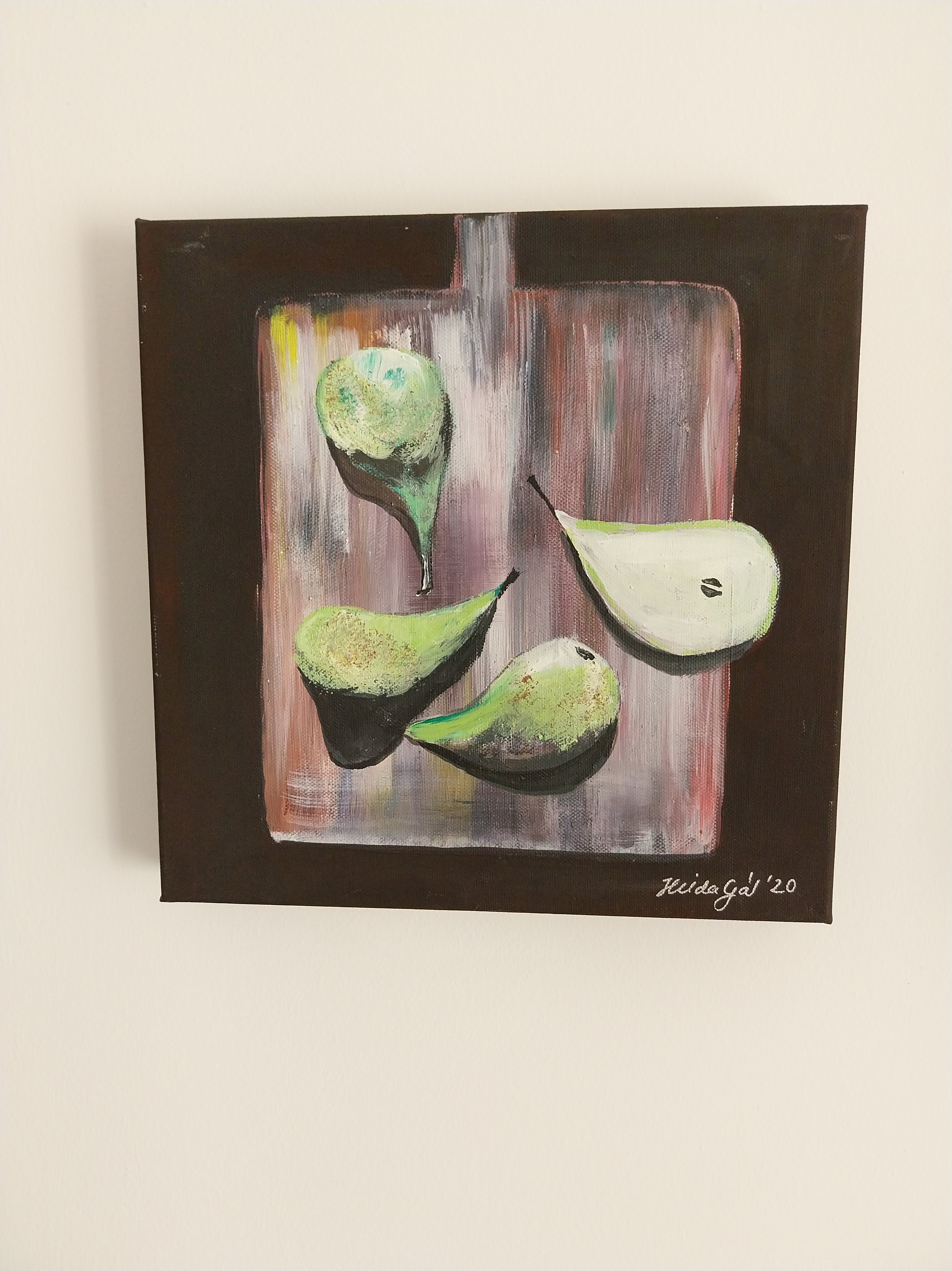 It may sound like an exotic recipe, but these words describe a matching set of three, acrylic on canvas and smaller dimensions: 30x30x3.8cm (12x12x1.5ins).